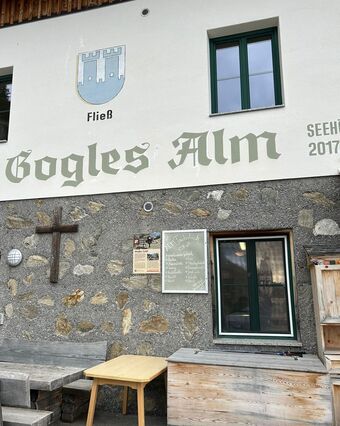Nach 6 km und 1,5 h hat man die Gogles Alm erreicht. In der gemütlichen Almstube gelangt man über eine flache Rampe. Das freundliche Personal serviert Köstlichkeiten aus der Naturparkregion.