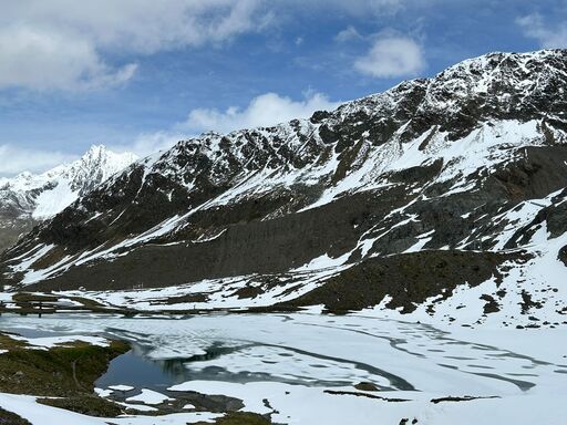 Bei der Rückfahrt unmittelbar unter der Weißseespitze liegt ein Bergsee, dem man leider die Klimaerwärmung ansieht und im Hintergrund der Gletscher brachte uns fast zum Weinen. In 20 Jahren wird er wohl ganz verschwunden sein. Vielleicht noch früher meinte mein Sohn, der Geoökologe ist.